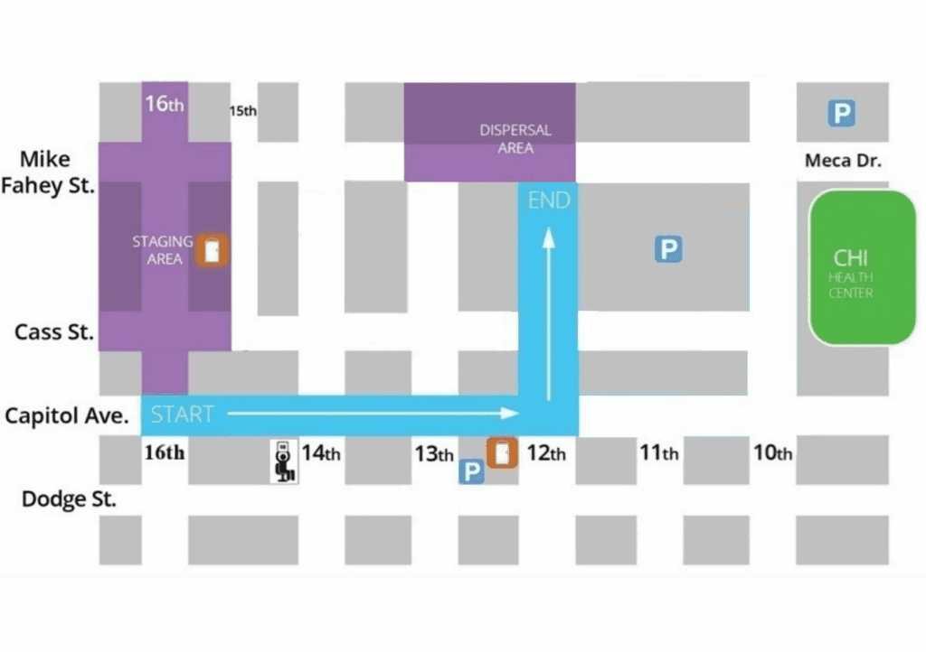 Parking is available at Park Omaha garages located at 10th & Jackson and 15th & Douglas